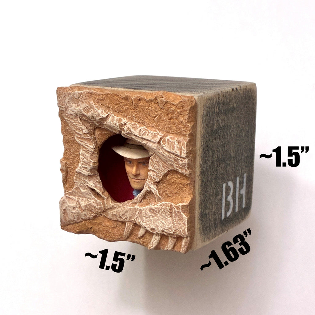 Peeks are fully-enclosed miniature figures, only visible through the window in the front of the box. Each Peek is a resin cast, made from the mold of an original sculpture. They are each hand-painted. The enclosures are also custom made, and not meant to be opened. Since each figure and enclosure is made by hand, the appearance and size of your Peek may be slightly different from the one pictured. This is an edition of 18.