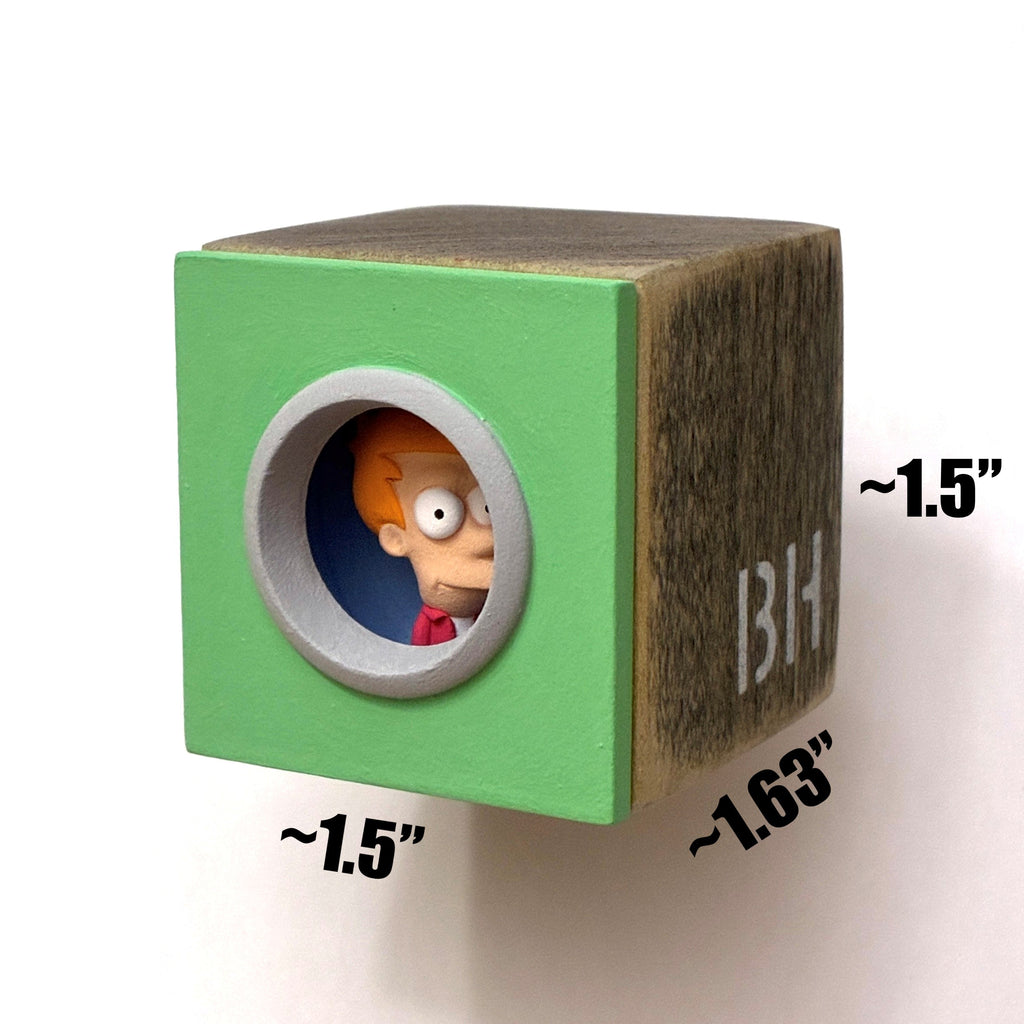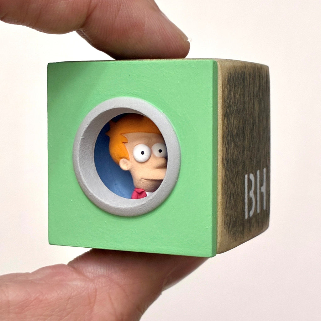 Peeks are fully-enclosed miniature figures, only visible through the window in the front of the box. Each Peek is a resin cast, made from the mold of an original sculpture. They are each hand-painted. The enclosures are also custom made, and not meant to be opened. Since each figure and enclosure is made by hand, the appearance and size of your Peek may be slightly different from the one pictured. This is an edition of 18.